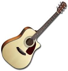 Hay una gran variedad de este tipo de guitarras como la guitarra tipo country que se muestra en la imagen de la derecha, la guitarra española o clásica que es la más común, la guitarra con resonador cuyo sonido es producido por uno o más conos metálicos, entre otras.